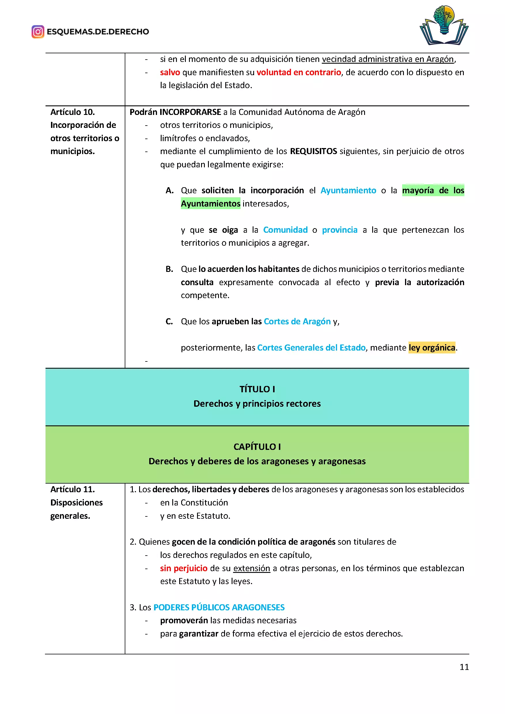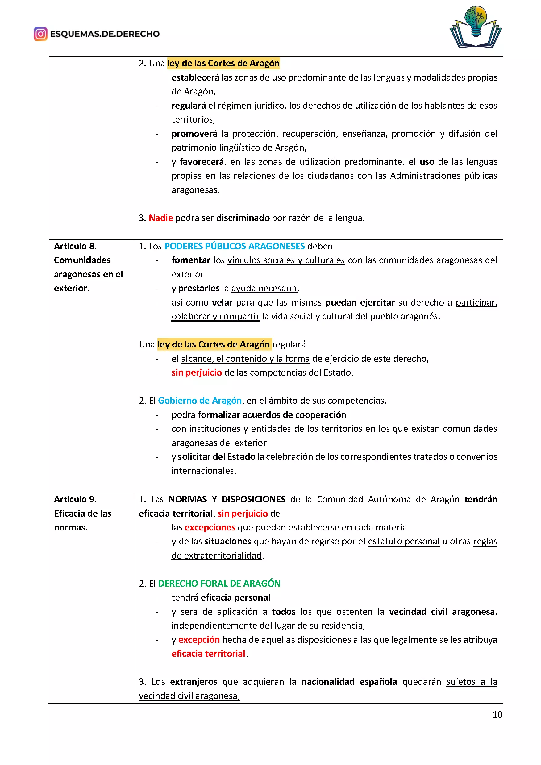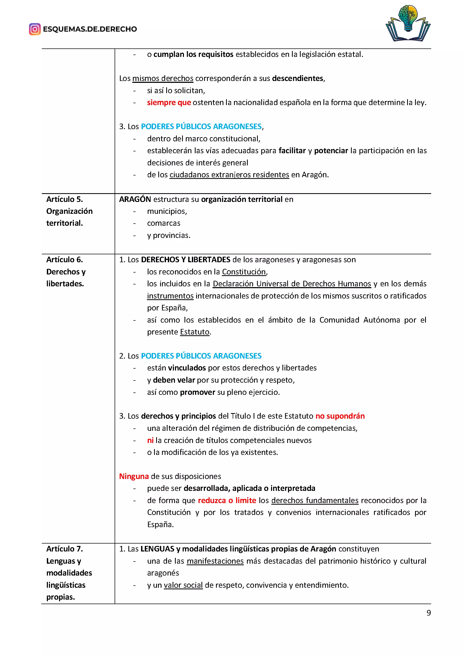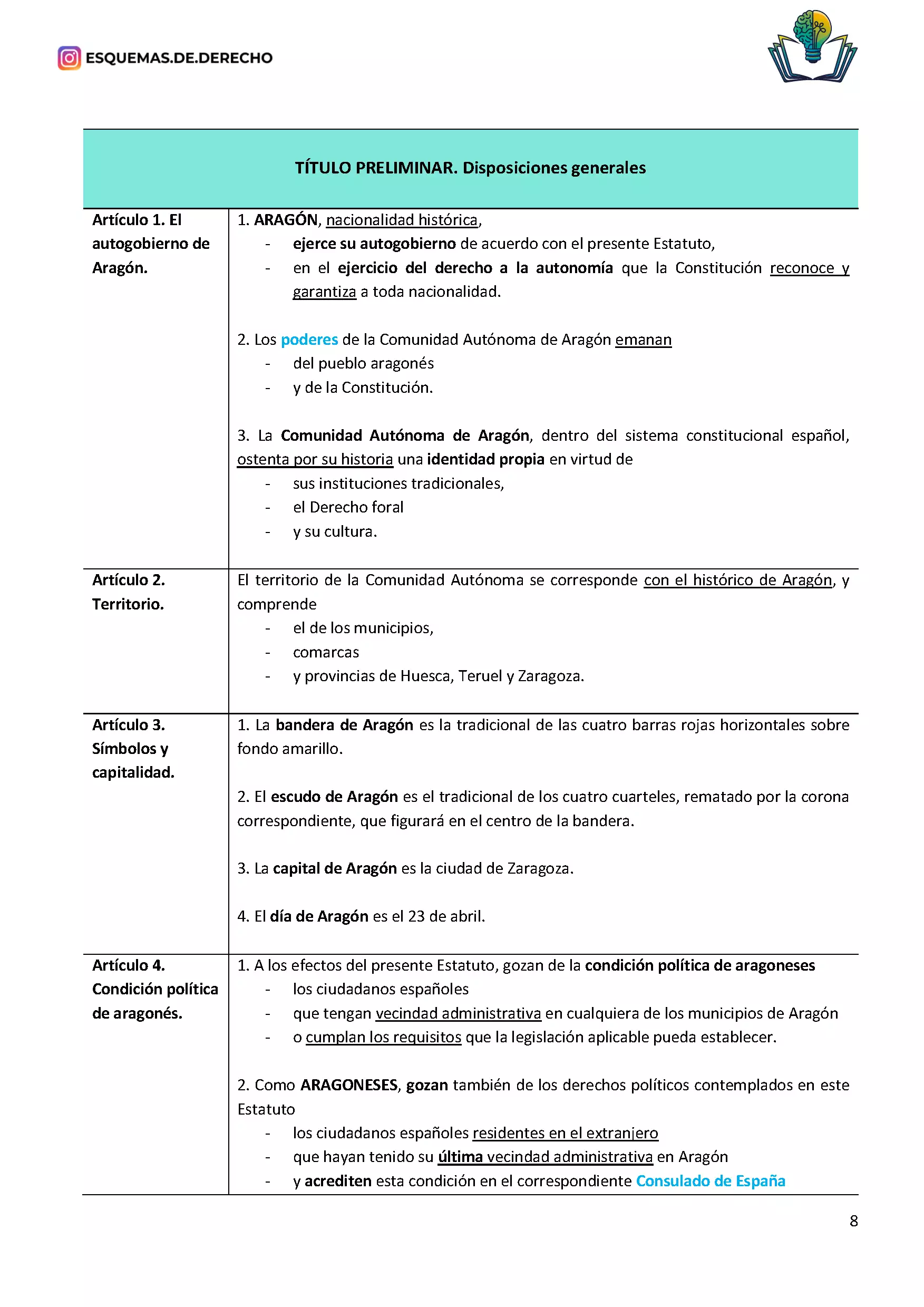 El Estatuto de Aragón de Esquemas de Derecho, es una ley preparada específicamente para opositores y estudiantes, y es desarrollada por profesores de oposiciones.