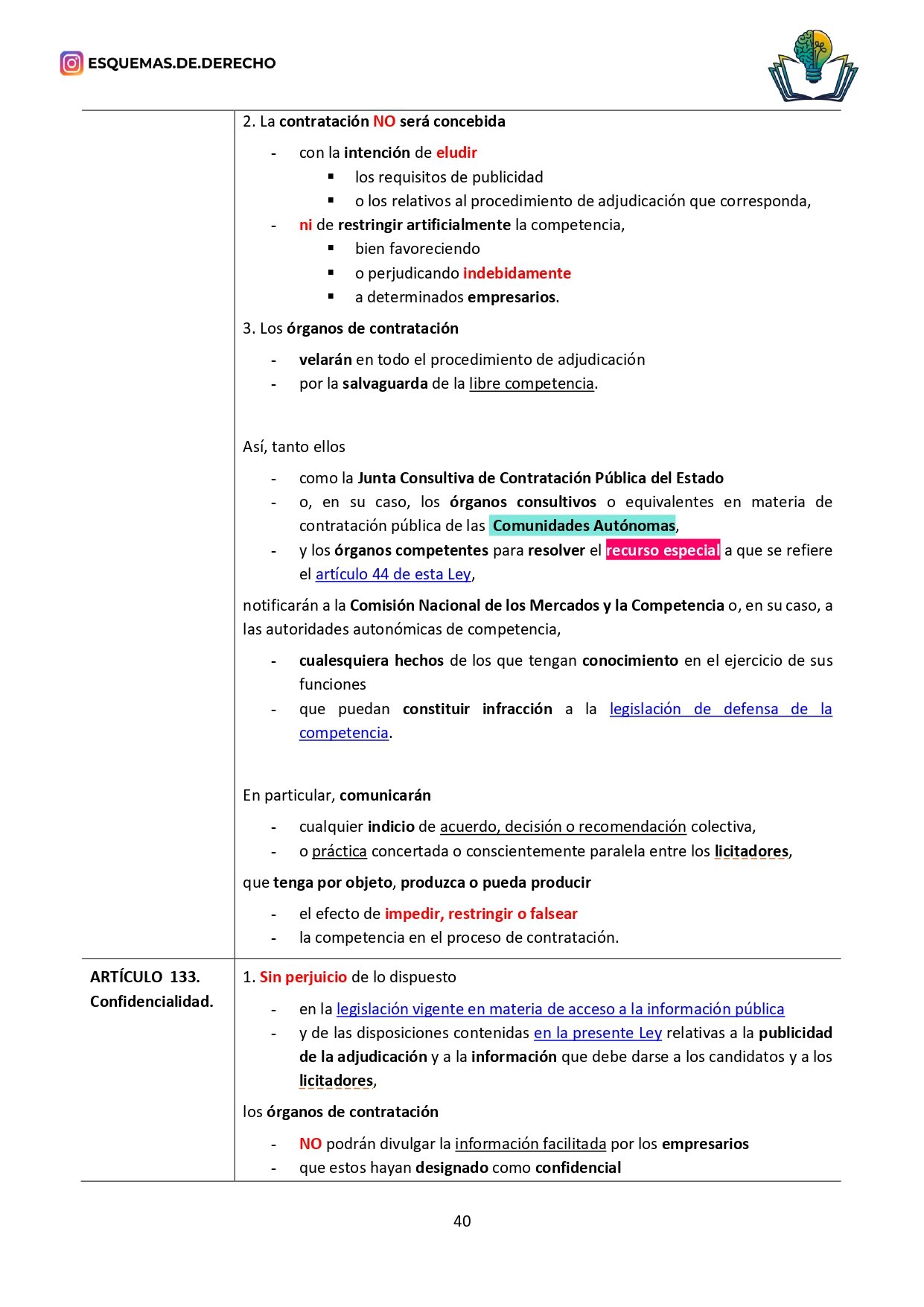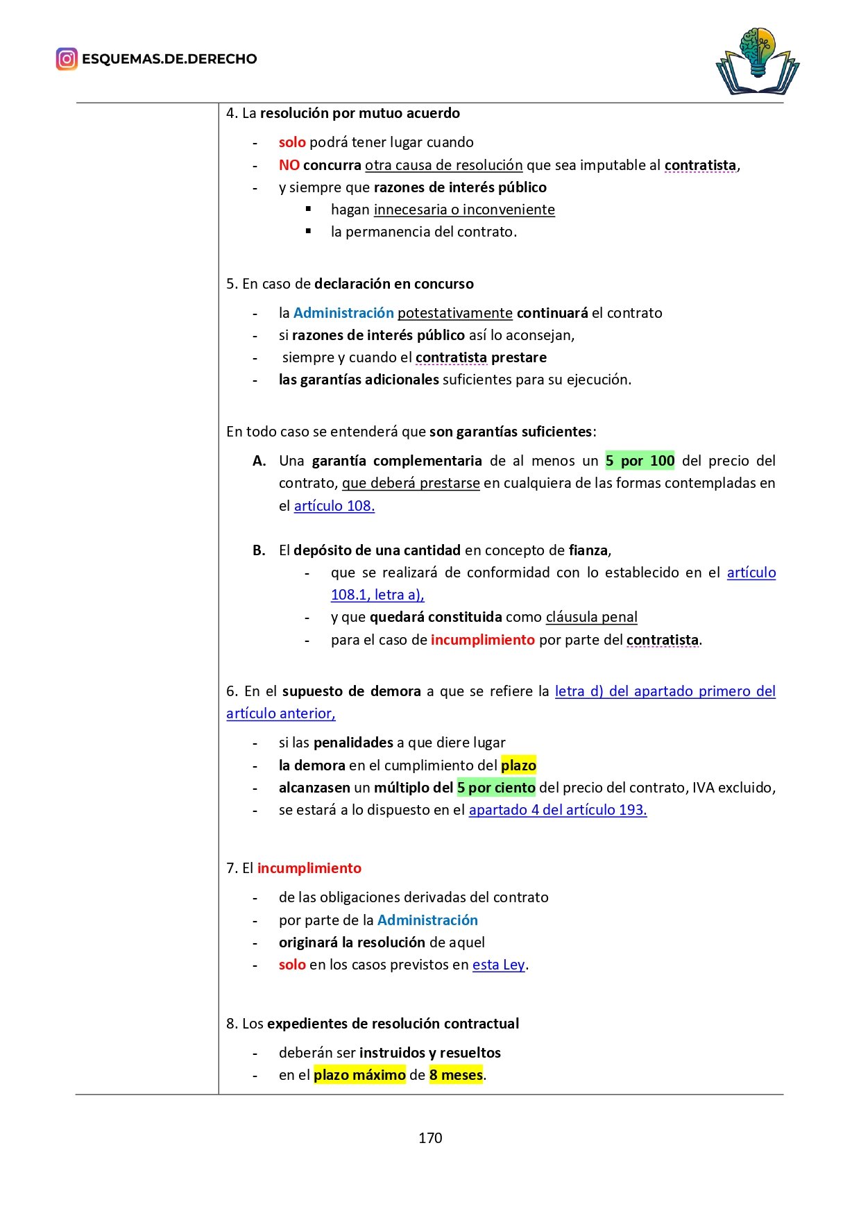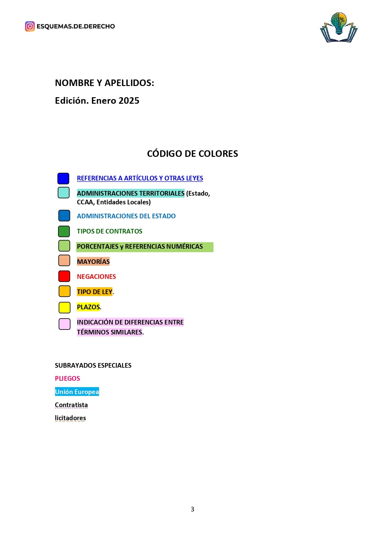 - Revisión Rápida: Facilita las sesiones de repaso, permitiendo una revisión rápida de los temas más importantes antes de los exámenes, o de los datos que deben retenerse a corto plazo, como los plazos o mayorías, sólo tendrás que buscar en la ley los subrayados de color amarillo, naranja o verde.