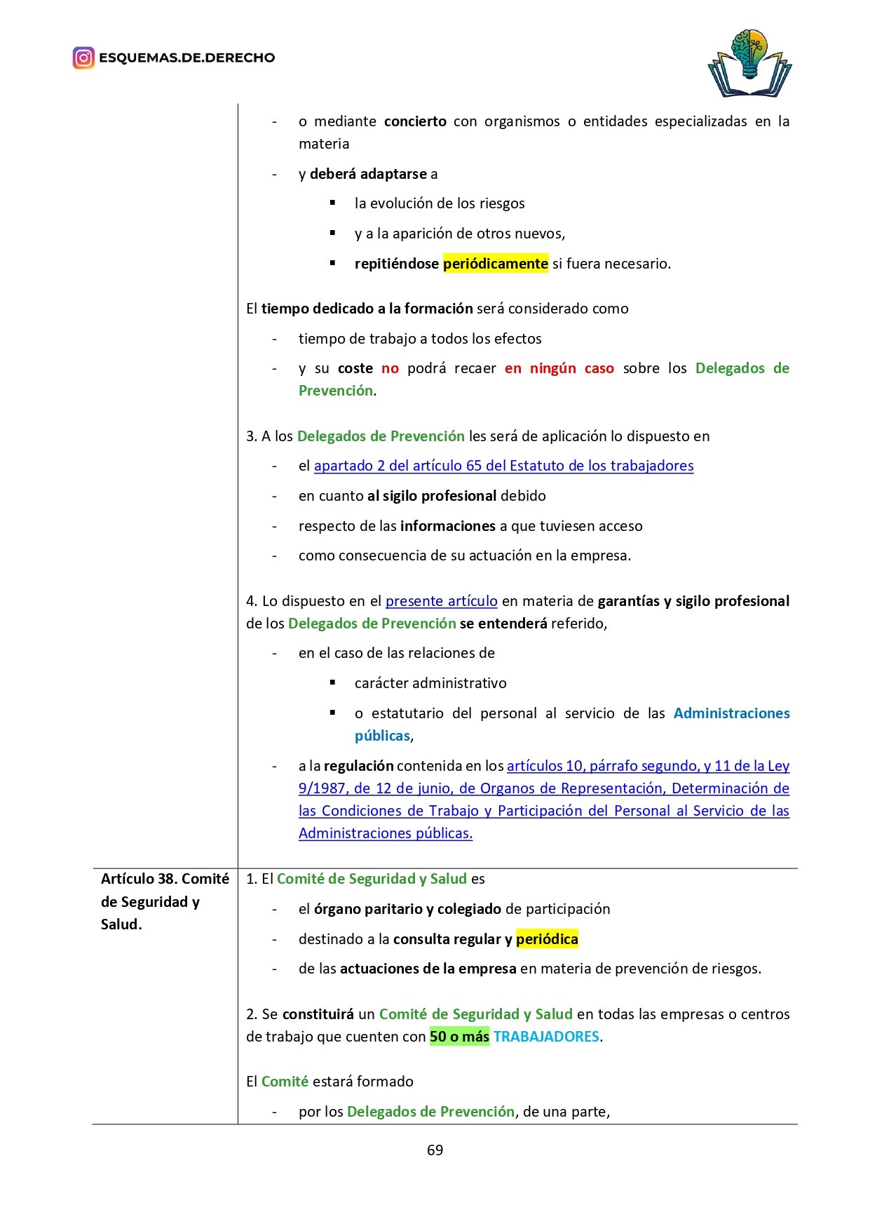 • Revisión Rápida: Facilita las sesiones de repaso, permitiendo una revisión rápida de los temas más importantes antes de los exámenes, o de los datos que deben retenerse a corto plazo, como los plazos o mayorías, sólo tendrás que buscar en la ley los subrayados de color amarillo, naranja o verde.