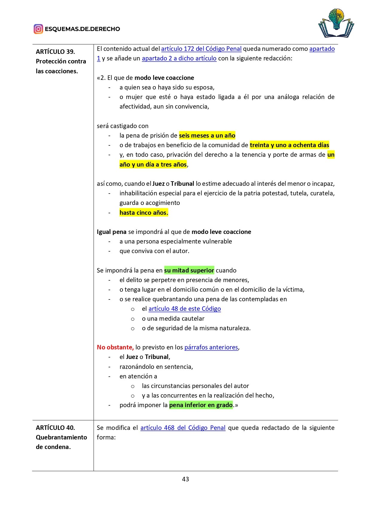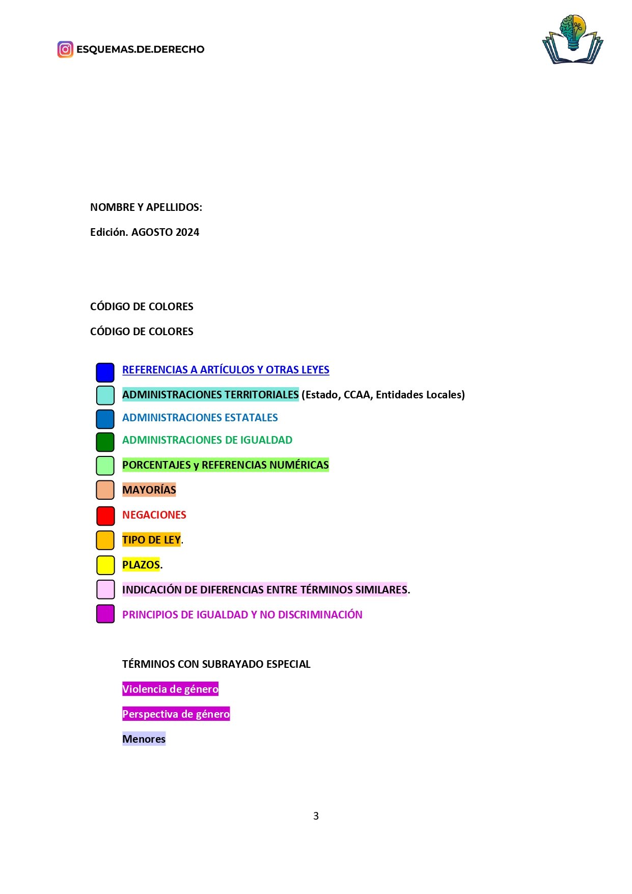 • Revisión Rápida: Facilita las sesiones de repaso, permitiendo una revisión rápida de los temas más importantes antes de los exámenes, o de los datos que deben retenerse a corto plazo, como los plazos o mayorías, sólo tendrás que buscar en la ley los subrayados de color amarillo, naranja o verde.