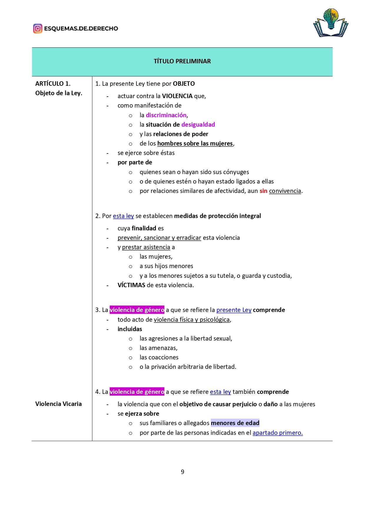 Ley de Medidas de Protección Integral contra la Violencia de Género de Esquemas de Derecho, es una ley preparada específicamente para opositores y estudiantes, y es desarrollada por profesores de oposiciones.