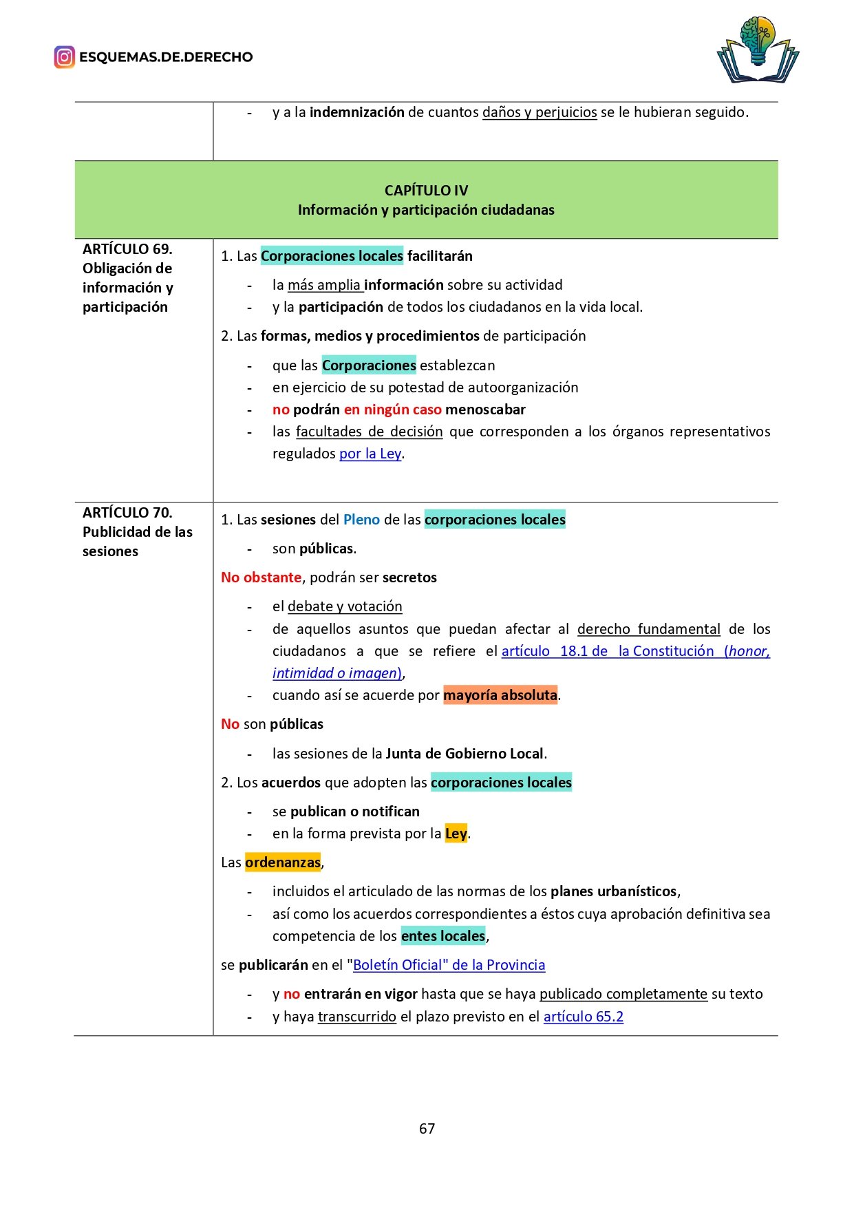 Ley Reguladora de las Bases del Régimen Local de Esquemas de Derecho, es una ley preparada específicamente para opositores y estudiantes, y es desarrollada por profesores de oposiciones.